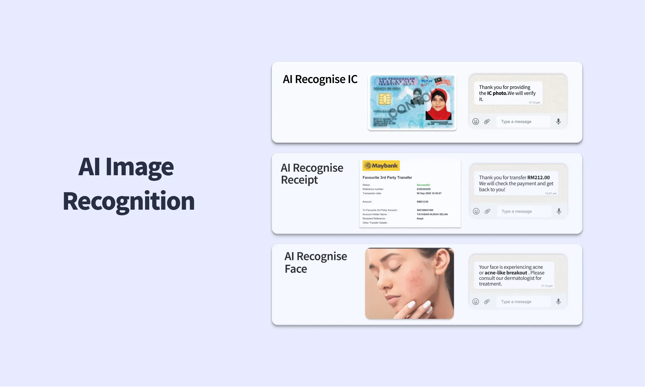 A trained AI chatbot can analyze images (like address or payment receipts) and reply accurately.
