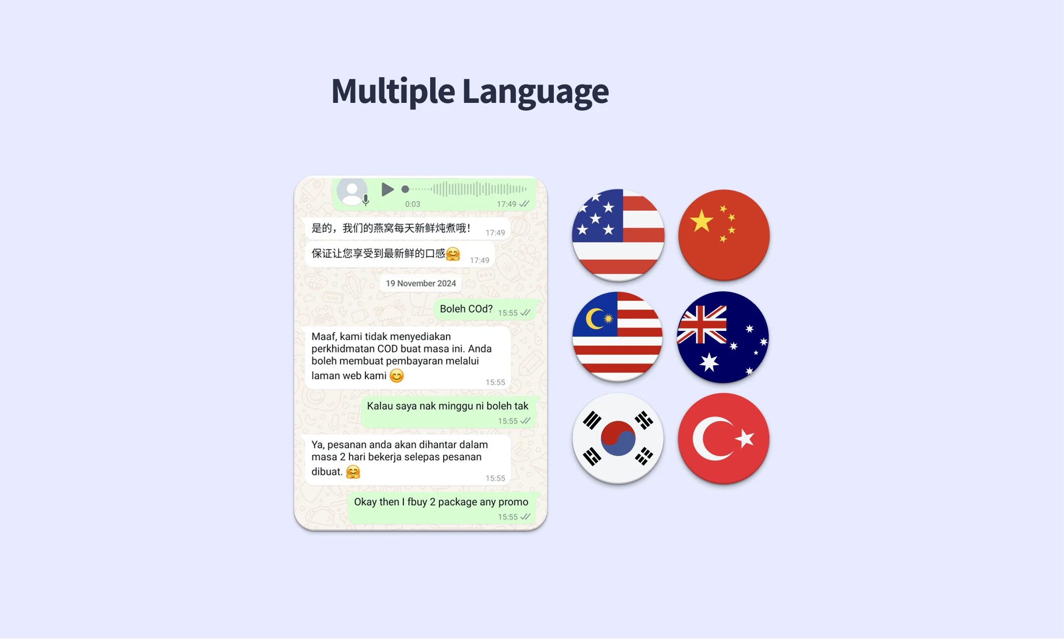 In global or regional markets, chatbots can capture data in multiple languages. Example: A customer chatting in Malay or Mandarin can still have their responses standardized and stored in English within your system.