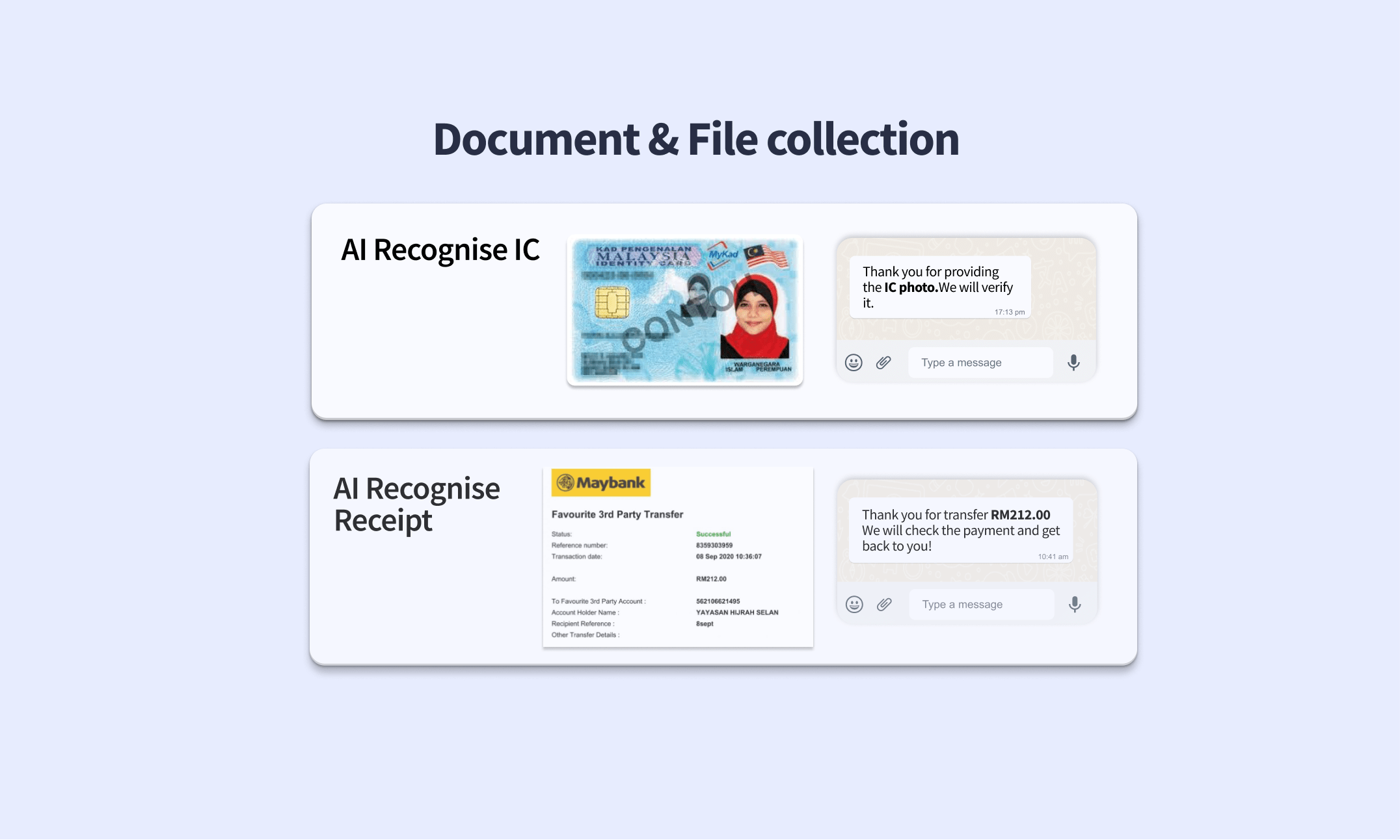 “Great! Can I have your full name?” “What’s your monthly income range?” “Please upload your payslip for verification.”