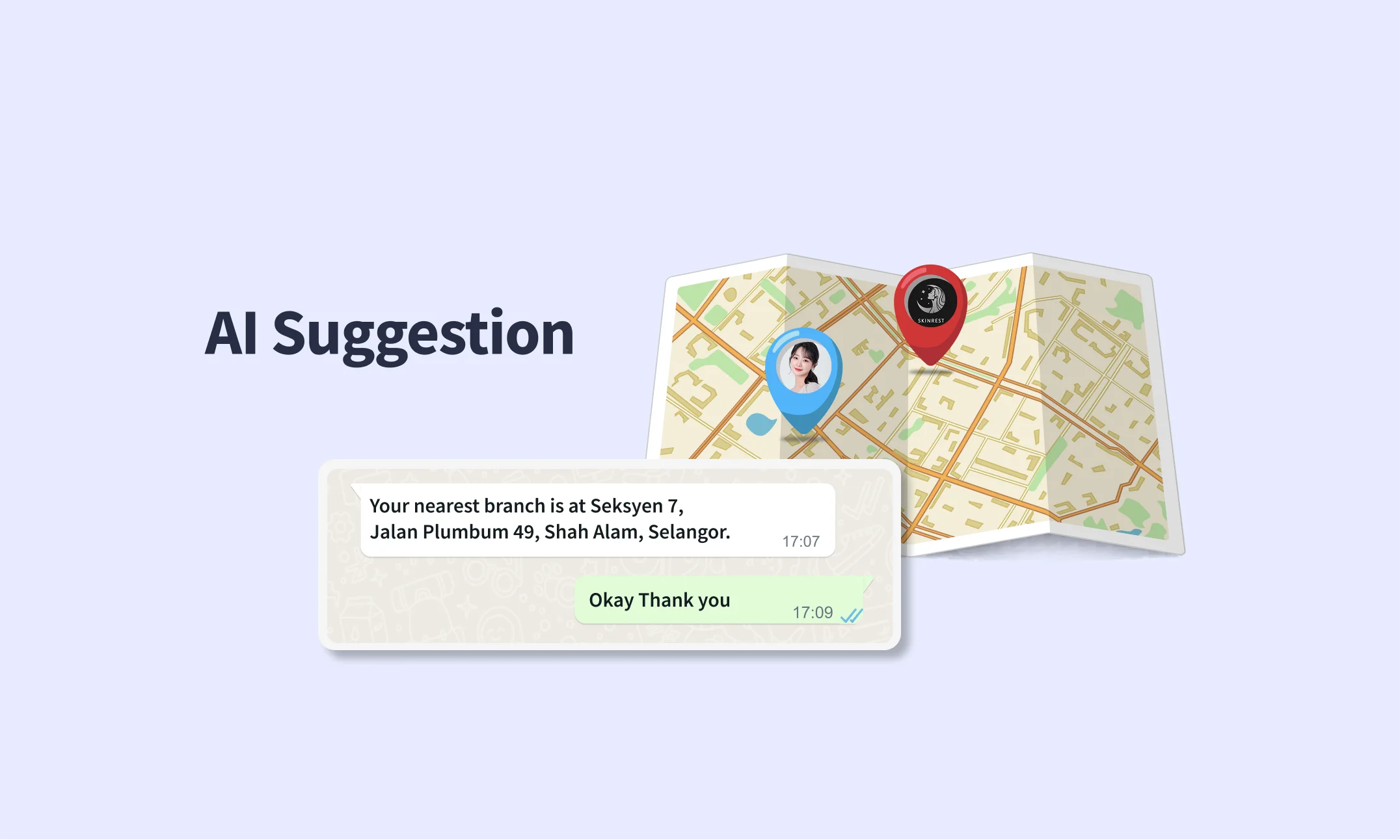 “Based on your location in Puchong, our Bandar Puteri branch is the closest! Click here for Google Maps 👉 [link]”
