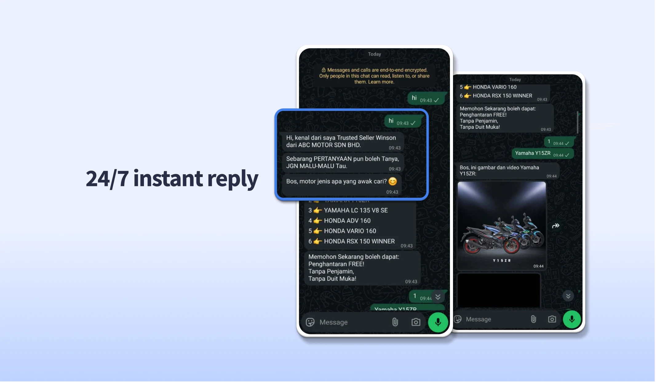 - ChatsHero Bot: “Yes~ our latest Y16ZR SE 2024 model starts from RM12,999 🚀 Would you like to check loan options or book a test ride?”