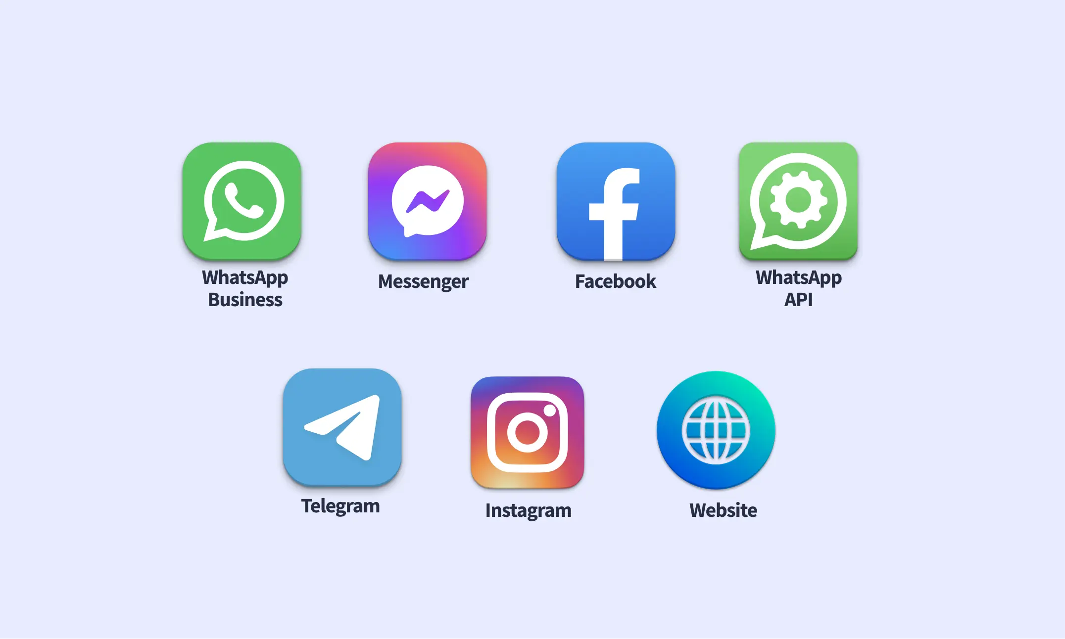 WhatsApp, Messenger, Instagram, website live chat, Telegram, etc.
